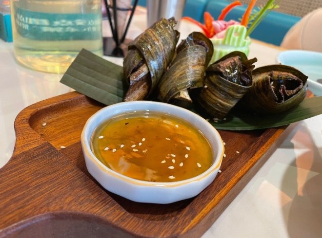 阿莉雅泰夫人泰皇咖喱炒大蝦,東南亞招牌硬菜,咖喱奶味非常出眾,四只大蝦個頭非常大,新鮮飽滿,好吃到舔盤。香茅炸雞翅外皮酥脆入味,香茅的獨特香氣與雞肉的鮮嫩融合得恰到好處,搭配泰式甜辣蘸醬,酸甜微辣的口感瞬間喚醒味蕾。香茅烤豬肉肉質緊實有嚼勁,香茅的香氣深入肉里,撒上芝麻更添風味,搭配泰式酸辣蘸醬,酸辣開胃,越吃越上癮。