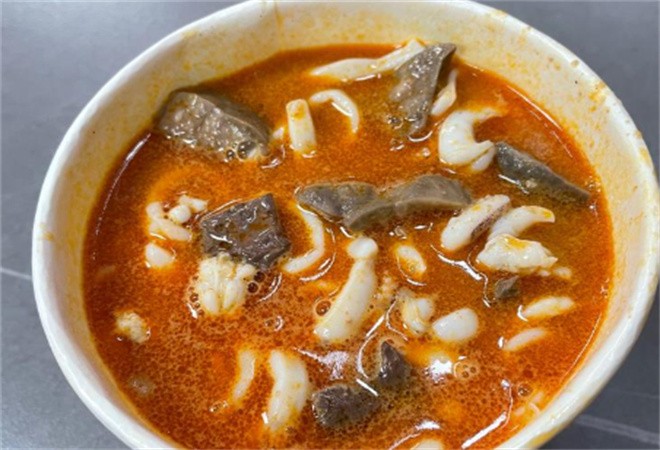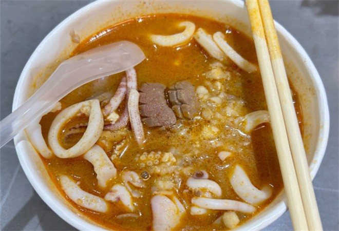 如果說湯頭是沙茶面的靈魂,那么油條就是這碗面的“最佳拍檔”。這里的油條都是現炸的,老板每天早上和下午會分時段炸制,保證食客能吃到最新鮮的。剛出鍋的油條金黃酥脆,外酥里嫩,散發著面香和油香。將油條掰成小段,泡在沙茶湯里,油條瞬間吸飽了湯汁,變得柔軟多汁,既有沙茶的濃郁,又有油條本身的香脆,一口下去,滿足感爆棚。這種吃法,既有油條的香脆,又有沙茶面的濃郁,是老廈門人最愛的早餐搭配之一,也讓這碗沙茶面的美味更上一層樓。