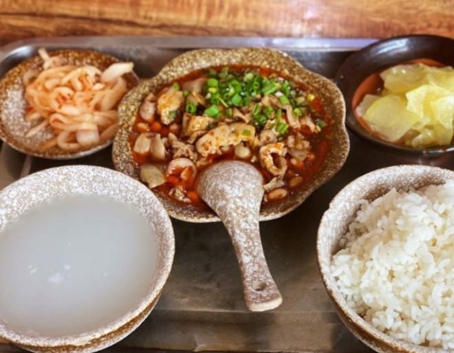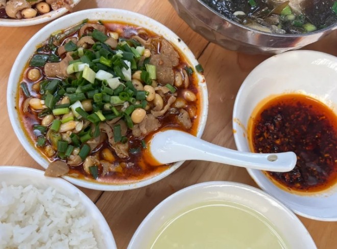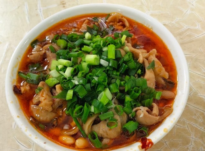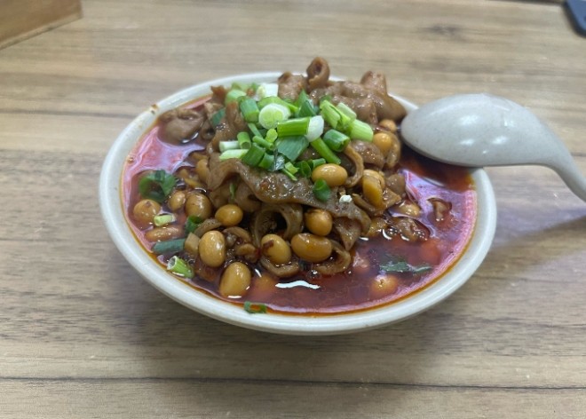 建春哥鮮鮮肥腸飯招牌菜,將肥腸處理得很干凈,沒有那些讓人不適的味道。肥腸燒黃豆是經典的重慶做法,微辣,黃豆的香味和肥腸的香味融合在一起,連湯汁都能伴一碗飯,絕對是下飯神菜。