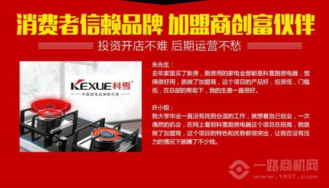 雖然說今天市場上的廚衛電器有很多,但是真正深受消費者喜愛的品牌少之又少,其中科雪電器,產品的安全性強,給人們帶來了健康的廚師生活,科學合理的設計,先進的原材料供應,良好的售后服務體系,杜絕了各類安全隱患,消費者使用無憂,加盟商賺錢無憂。