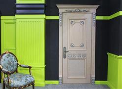 “兩生花”整體采用幾何構圖的設計,摒棄繁復。采用了仿古綠配同色雕花,色澤渾然一體,一氣呵成,毫無瑕疵。仿古綠這種獨創的顏色代表了一種低調的奢華,同色的雕花讓人心靜如水,刮白的處理如心間的一絲蕩漾,卻又毫無痕跡;另一種經典配色采用仿古灰搭配仿古銀雕花,點綴清新,有畫龍點睛之妙,低調中又有些張揚,灰色的沉靜加上銀色的生氣,使整個門層次分明,奪人眼目。