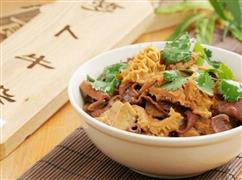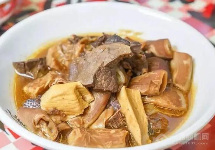 次日,容妃在眾人攙扶下便裝向祖廟進發,行至祖廟約數百米處,忽聞人聲鼎沸,熱鬧異常,再近,眾人聞到一股獨特香味,只見一小攤前人頭攢動熙熙攘攘,男女老幼蜿蜒排隊竟有百十人之眾。乾隆詫異,令隨從一探究竟,不時回報,此乃當地一名小吃,曰“牛雜”。