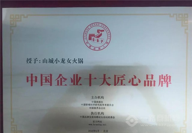 本次活動以“品牌蝶變,世界智造在中國”為主題,以大力宣傳中國品牌,講好中國品牌故事,提高自主品牌影響力和知名度為宗旨,圍繞如何從中國制造到中國創造,從中國智造到中國品牌制造等相關話題進行深入探討,共話中國品牌未來發展藍圖。將盛邀國內政要、專家學者、創新先鋒、企業領袖、媒體記者等500多人。山城小龍女火鍋廖清女士受邀參加,并通過網絡公開投票選舉榮獲企業“中國企業十大匠心品牌”獎和“中國品牌誠信人物”獎。