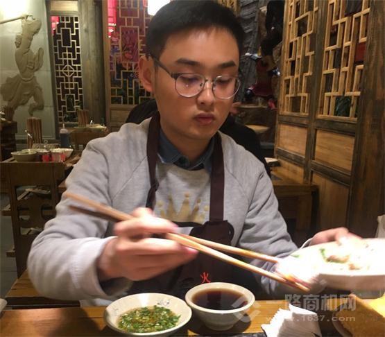 右手拿筷,左手掌勺。