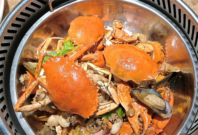 "七景天迷宗蟹"制造做資料配合精湛廚藝,百味相浸,制造而成。吃法有兩種,一種是干炒裝盤,一種是油鍋浸炒。鍋湯鮮艷,蟹色橙紅,香味濃郁,鮮味不失??谖断汤滨r香又略帶微甜,肉質肥滿而鮮嫩。先吃蟹殼,再吃蟹身,吃那兩只大蟹鉗,真是唇齒留香。吃完蟹,加一些高湯進去,可再涮食鮮嫩的毛肚、羊肉、碧綠的青筍或其它菜品,一鍋兩吃,營養兼備,回味無窮。