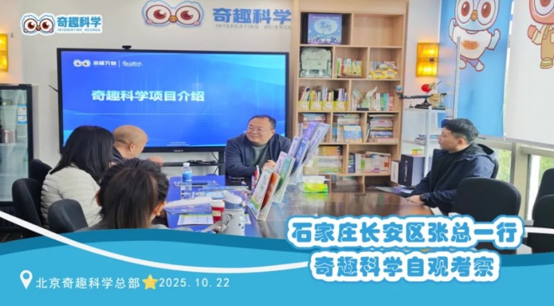 10月22日,石家莊長安區張總一行與陜西榆林府谷劉總一行,帶著對區域教育發展的深度思考,專程到訪奇趣科學總部。作為深耕地方教育管理與行業轉型的核心力量,劉總始終聚焦“素養機構如何破局轉型”,張總則在尋找跨界進入教育領域的優質切入點——此次實地考察,正是為了驗證優質科創課程的落地可行性,為各地的教育發展與行業轉型,探尋全新方向。