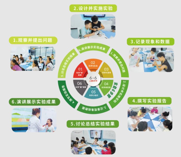 實驗六步驟:“觀察并提出問題—設計并實施實驗—記錄現象和數據—撰寫實驗報告—討論總結實驗結果—演講展示實驗成果”完整探究流程,讓孩子像科學家一樣去思考、探索和發現。