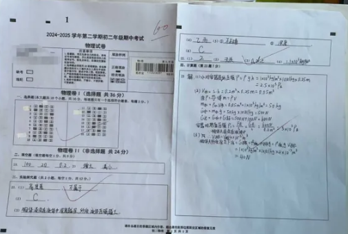 小宇這次物理考試又拿下滿分!