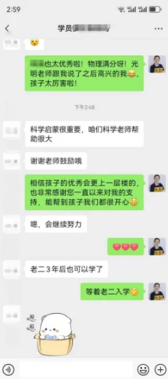 兩個月沒聯系的小宇媽媽興奮的發來賀電:"這次期中考試,又是滿分!"實在的宇媽,緊接一句:“等老二上三年級,一定也要上奇趣科學!”