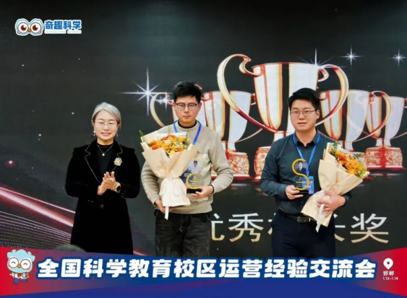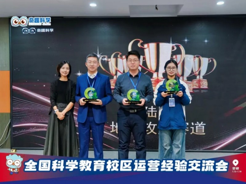 奇趣科學(xué)的老師為分別獲得獎(jiǎng)項(xiàng)的伙伴進(jìn)行頒獎(jiǎng),河北唐山、河南中牟、河北邯鄲校區(qū)憑借出色的地推成果斬獲殊榮;