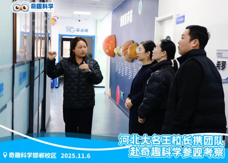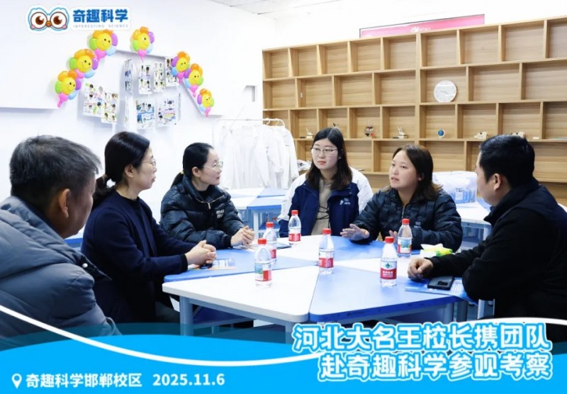 2025年11月6日,河北邯鄲大名AI自習室領域的領軍者——王校長,攜核心團隊蒞臨奇趣科學邯鄲直營校區。這場考察不止是一次簡單的走訪,更是一次對素質教育創新路徑的探索:王校長團隊全程深入了解奇趣科學從課程研發、教學落地到運營支持的全鏈條體系,為雙方后續在素質教育領域的合作埋下共贏伏筆。