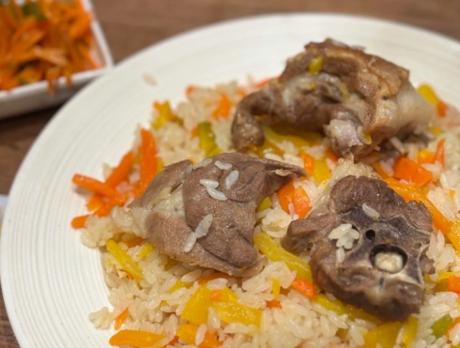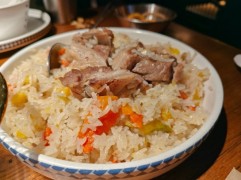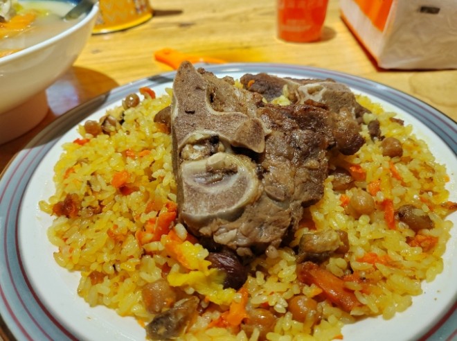 盛添抓飯碎肉抓飯香到舔盤,米粒油潤不黏糊,羊肉軟嫩沒膻味,配著胡蘿卜甜絲絲的,直接炫光,三大塊羊排,肉燉得軟爛脫骨,輕輕一撕就分離,油脂香混合米香直沖天靈蓋,米飯無限續!