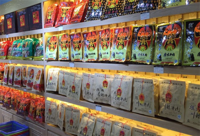 特產專賣店不斷推陳出新,有牛肉干系列,休閑肉制品系列,炒貨系列,蜜餞系列,腌臘系列,廚房食品系列等共計200余個花色品種及規模,質佳、味美、營養,深受各方歡迎,其中牛肉干、鴨肫干、鴨舌等產品享有很高聲譽,十分俏銷,為消費者購買的優選品牌之一。
