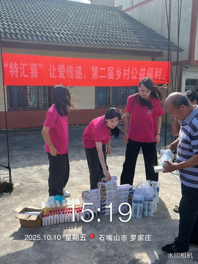 2025年10月10日特匯喜品牌親臨寧夏石嘴山市羅家莊慰問父老鄉親在鄉村的暖陽下,“特匯喜”讓愛傳遞的公益足跡熠熠生輝。志愿者們帶著暖心物資,奔赴每一張期待的臉龐——或是白發蒼蒼的老人,或是純真爛漫的孩童,將關懷遞到他們手中。一瓶飲品、一份洗護用品,雖微小卻承載著沉甸甸的善意,讓鄉村的風都染上溫暖的味道,也讓這份愛,在田野與屋檐間,生生不息地傳遞下去。我們一起努力,一起共同加油,讓我們大家越來越好