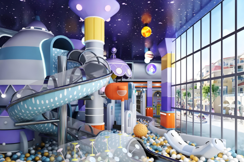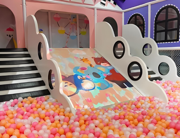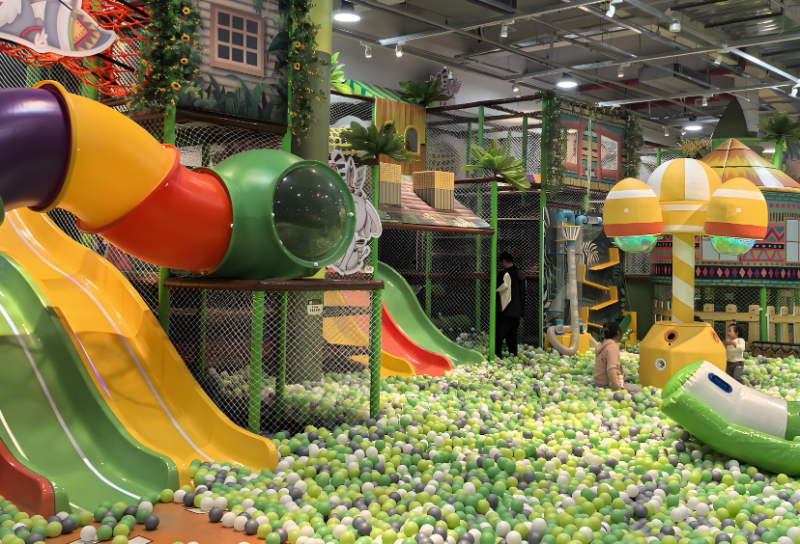 低齡區(1-3歲):設施高度不超過1.2m,設置圍欄與家長監護區,配備軟體搖搖馬、迷你隧道等;