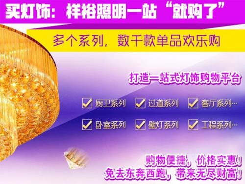 5. 100%退換貨,終身配件免費(fèi)補(bǔ)發(fā):一體化服務(wù)平臺(tái),統(tǒng)一條碼、規(guī)范訂購,隨時(shí)訂貨、即時(shí)配發(fā),實(shí)時(shí)查詢、安全到達(dá)。破損、積壓、不好銷售產(chǎn)品隨時(shí)發(fā)回祥裕照明總部完全保障你的利益,燈飾配件終身急速補(bǔ)發(fā),讓客戶裝燈無憂。
