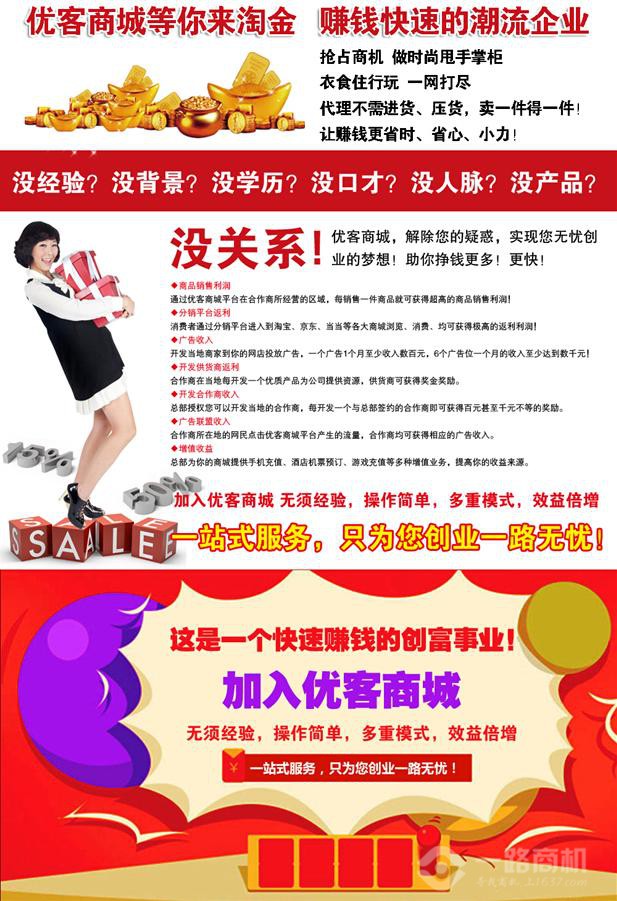沒關(guān)系!優(yōu)客商城,解除您的疑惑,實現(xiàn)您無憂創(chuàng)業(yè)的夢想!助你掙錢更多!更快!