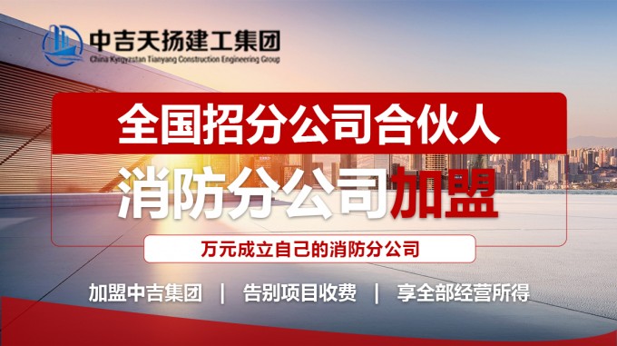 中吉天揚建工集團致力于消防加盟,公司具備:消防設施工程承包一級資質、裝飾裝修工程承包二級、機電安裝工程三級、建筑工程三級、機電工程三級、消防設施工程設計乙級、建筑裝飾工程設計乙級。現誠邀各地區,優秀個人、團隊,合作加盟設立分公司,資源共享,互惠雙贏,共圖發展。分公司能夠獨立經營、賬戶獨立、印章獨立、財稅獨立、無抽成、無提點、費用透明,讓您能夠安心創業!歡迎直接撥打電話詳細溝通咨詢了解。